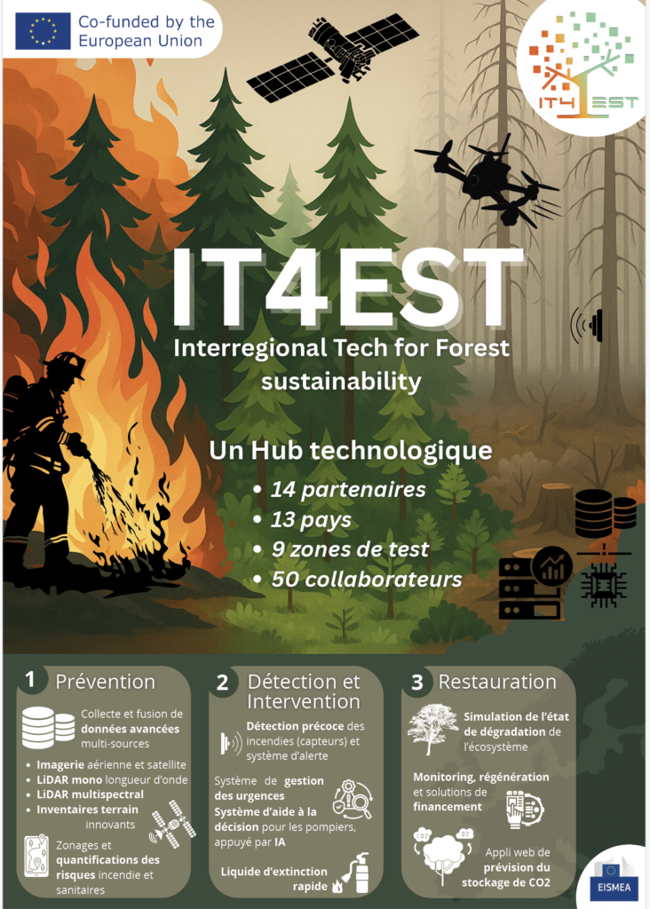 Forestry France est engagée au cœur du projet européen IT4EST, un programme de recherche et développement financé par la Commission européenne, dédié à un enjeu clé : mieux anticiper et gérer les risques incendies et sanitaires en forêt grâce à l’innovation technologique.